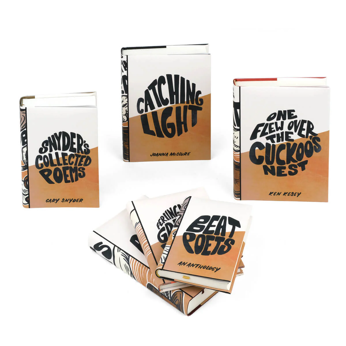 Our curator thoughtfully brought together 6 of the most influential works from The Beat Generation literary movement, showcasing the poetry of Ginsberg, Ferlinghetti, and Snyder alongside Kerouac's iconic novels, On the Road and The Dharma Bums.