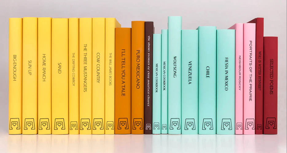 Transform your shelves with a custom book collection where color-coordinated design and bold, modern fonts take center stage.
