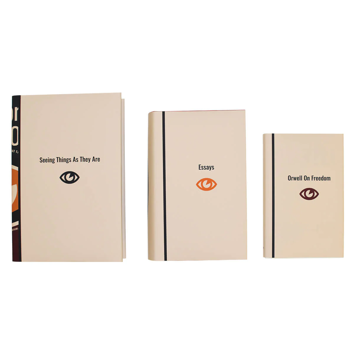 Experience George Orwell's collected works, including the dystopian classic 1984 and the fable-like allegory Animal Farm, with our complete made-to-order custom book set. This Orwell collection comes wrapped in custom jackets whose design pays homage to the watchful eye of Big Brother, adorned with hidden phrases and quotes from the classic novels themselves.