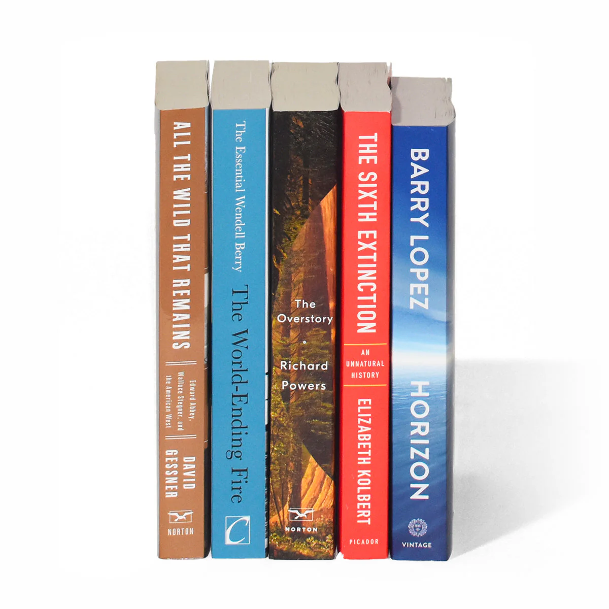 At Juniper Custom, we believe in taking care and celebrating our earth not just one day a year, but every day. For this book set, we curated five books about the environment, ranging from timeless prose to emerging climate science research and calls to action. The canvas book band unifying the books features a lush forest motif, serving as a visual reminder of the Earth we cherish and must protect.