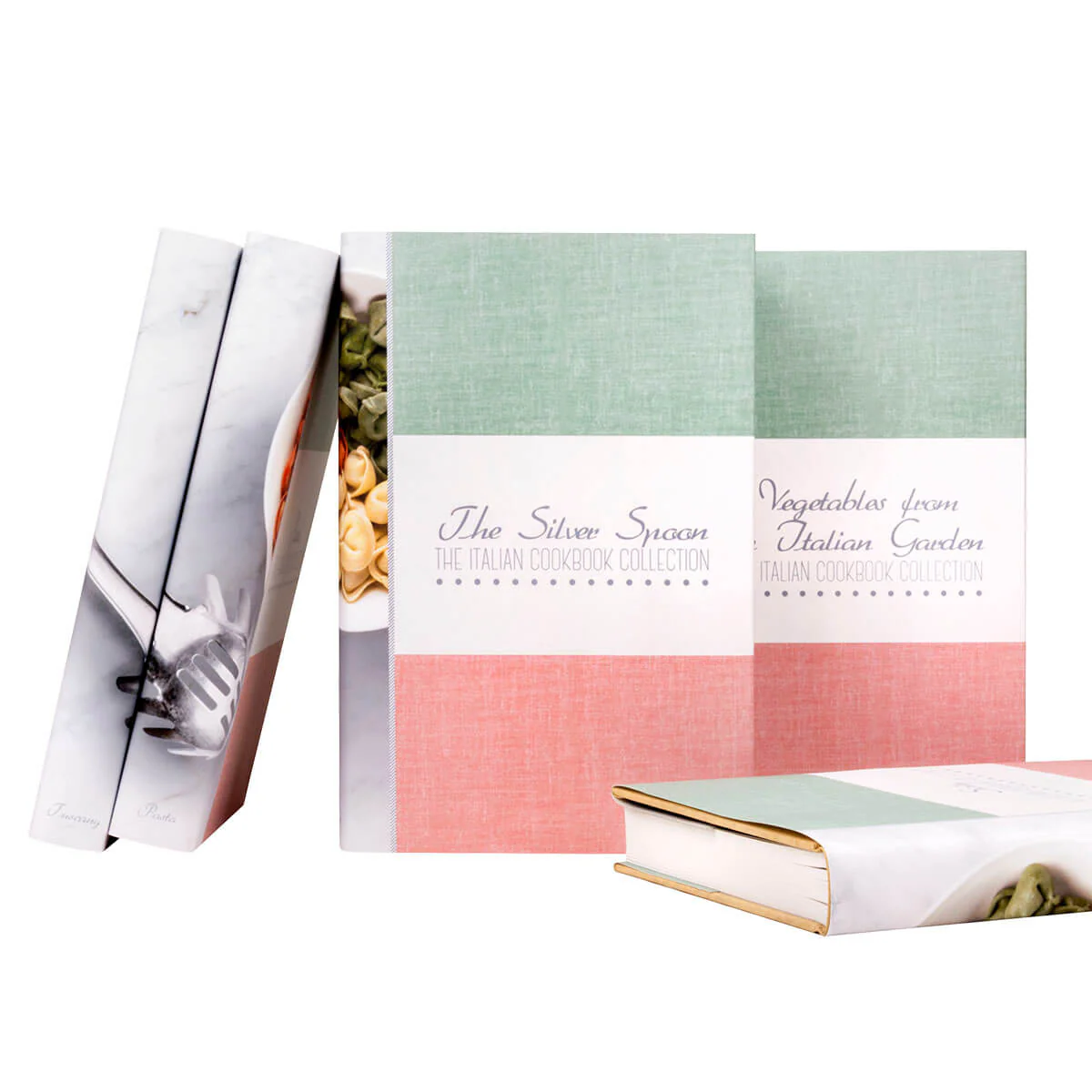 Bring the flavors and traditions of Italian cuisine into your kitchen with this set of five hardcover cookbooks by Phaidon, featuring custom-printed jackets depicting a bowl of tortellini in the colors of Italy's flag.