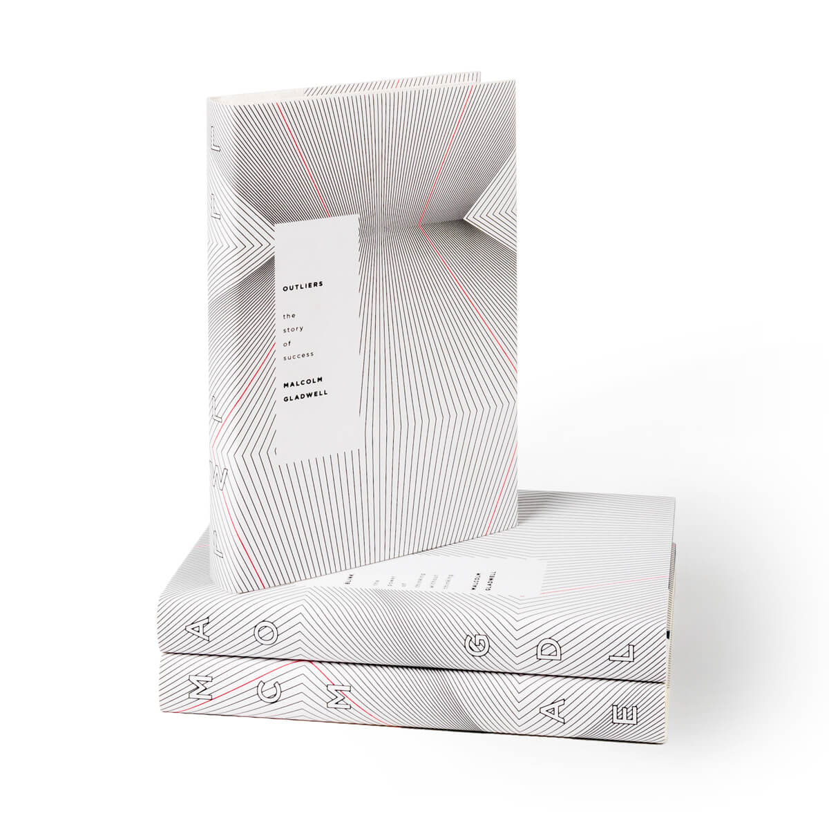 We decorated our custom-printed jackets in an abstract yet minimalistic design that harkens back to Gladwell’s writing. All books are hardcovers published by Little Brown and Company.
