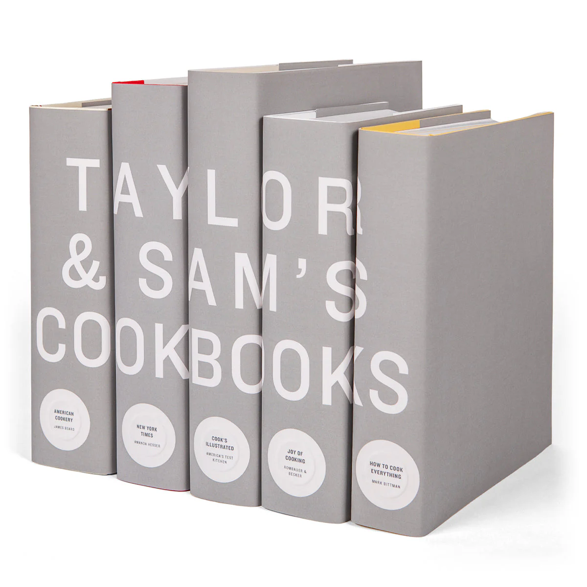 On Juniper Custom, our designers can personalize anything we create, making this cookbook set the perfect host, wedding, graduation gift... Add a name(s) to the jacket design and choose from three elegant jacket colors that complement any kitchen.