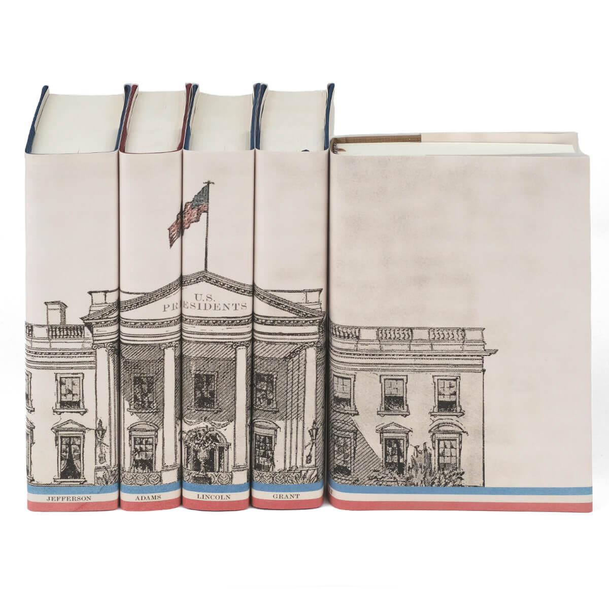 This five-book set gathers the writings of these presidents (and more) in beautifully bound, heirloom-quality volumes from Library of America. Our custom jacket design features an antique architectural rendering of the White House from the early 19th century.